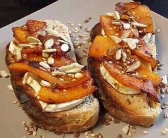 Tartine pain complet, potimarron poêlé, chèvre frais et graines de courge